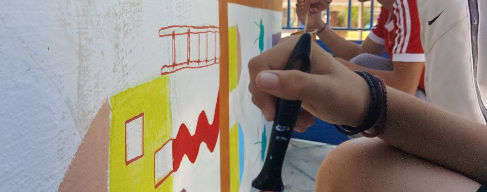 In spring 2025, 6th Grade students of the 7th Primary School of Aspropyrgos in the Nea Zoi Roma settlement took part in a participatory design program organised by West Attica Fairville Lab. The pedagogical activity that was co-produced together with the school’s teaching staff aimed to actively involve children in reimagining and improving the public space of their neighbourhood, amplifying their voices and creativity. Throughout a series of 5 workshops, the children explored concepts related to public space, the environment, socio-spatial inequalities, and participatory design. They shared observations, exchanged ideas, and collaboratively designed their vision for the route from home to school. The final result took the form of a mural, painted at the school entrance by the students during the program’s closing event.